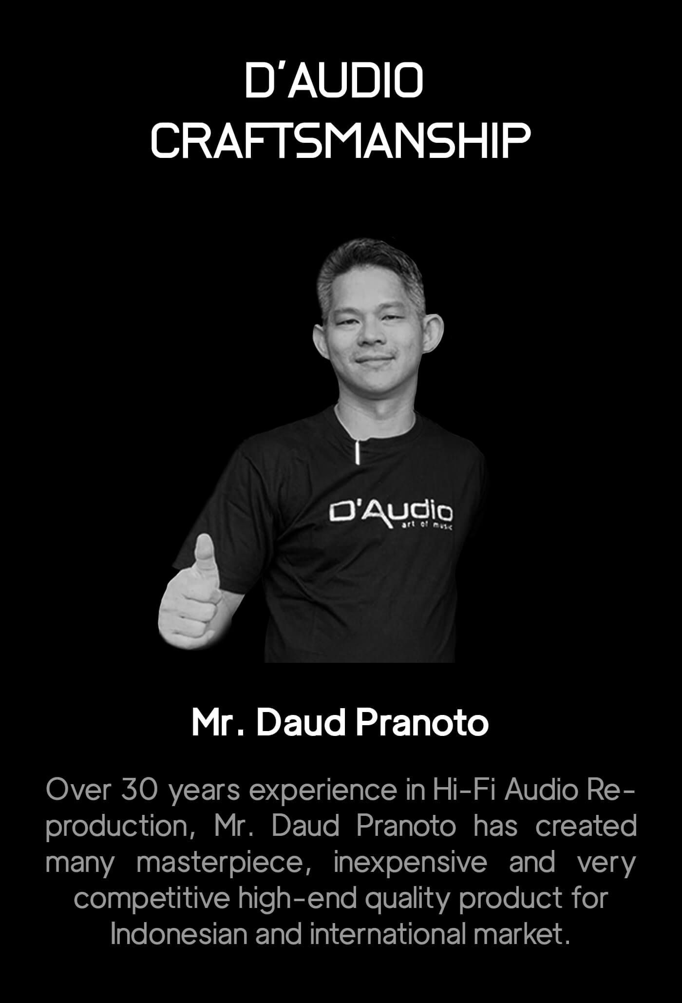 Driven by pure passion to create an affordable and competitive high-end quality audio system product for the Indonesian and international market, Mr. Daud Pranoto always brings the best offer of hi-fi audio supplies for our customers. Be the one to experience our finest audio system products.